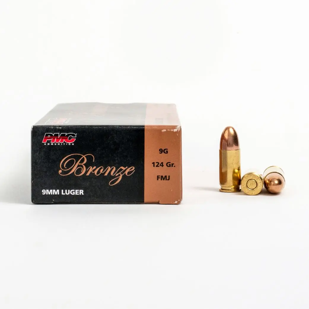Each 9mm 124 gr. FMJ PMC (9G) round is manufactured using only the best materials and components. This includes a 124-grain Full Metal Jacket bullet, non-corrosive Boxer primer, and first-run brass casing. All PMC ammunition complies with either SAAMI or U.S. Military Specification standards, resulting in ammunition you can rely on round after round.