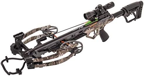 Offering big performance from a compact package designed for tight quarters, the Bear X® Constrictor Strata Crossbow Package gives hunters lethal performance that’s priced right. Just 10″ wide when cocked, this 9 lb. crossbow manuevers easily in ground blinds or a tight treestand to properly set up for accurate shots up to 410 fps. An adjustable cheek pad and stock (3″ of adjustment) ease handling even further. Anti-dry fire trigger system. A unique, ambidextrous design lets you place the top mount 5-arrow quiver on a 360° pivot on the left or right side of the crossbow, parallel to the bow. Draw Weight: 190 lbs. Package includes: Illuminated Scope, 3 TrueX arrows, top mount 5-arrow quiver, cocking rope, sling, and rail lube/string wax.