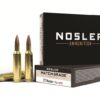 Nosler Match Grade Ammunition consists of Noslers precisely-designed Custom Competition bullet along with Nosler brass. Because of Noslers unsurpassed quality standards, each piece of brass is checked for correct length, neck-sized, chamfered, trued and flash holes are checked for proper alignment. To further ensure our reputation for quality and consistency, powder charges are meticulously weighed and finished rounds are visually inspected and polished.