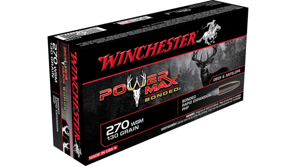 - Winchester Power Max Bonded Ammunition 270 Winchester Short Magnum (WSM) 130 Grain Protected Hollow Point 250 rounds