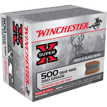 Specifications for Winchester SUPER-X HANDGUN .500 S&W Magnum 350 grain Jacketed Hollow Point Centerfire Pistol Ammunition: